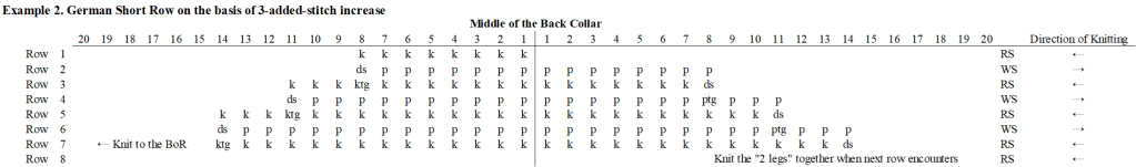 3. Example 2: German Short Row Based on a 3-Stitch Increase